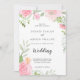 Den här vår-peoninbjudan är perfekt för ett elegant bröllop. Den moderna vår- eller sommardesignen har enkla rosa- och sage grönt-löv med vattenfärg och land med en rustik känsla. Ta med mer information (och OSA av online som tillval) på baksidan av kortet till spara papper.