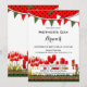 Festive Mors dag Brunch-inbjudan med röda tulpaner och buntning i grönt, rött och vitt.