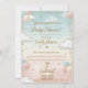 Denna charmerande inbjudan till babyduschen är ett perfekt sätt att fira den nya ankomsten. Utformningen har en mjuk, drömmande vattenfärgsbakgrund med himmel som övergår från en mjuk blå till en delikat rosa. Spelande moln flyter mellan att glittra guld-stjärnstoft och mousserande stjärnor, vilket skapar en vismisk och spännande känsla. Elegantens ballonger i blå nyans, rosa och grädde flyter på ett skonsamt sätt på båda sidor, vilket ökar den festliga atmosfären. Vid grund har en söt vagn mellan vintage och stil baby en bukett av mjuka rosa blommor. De guld-folieliknande accenterna och det klassiska skriptteckensnittet tillför en smula sofistikering, skapar den här inbjudande perfekten för välkomnande av flicka eller pojke.