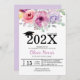 Fin inbjudan till blommigt med blommor i rosa och lila på vit bakgrund