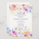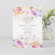 Den här färgstarka inbjudan för blommigt innehåller ett brett spektrum av färger och en mängd olika blommor i ett gräns som matchar grund och överst. Lämpligt för alla lycklig firande.