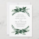 Vår Vild Forest bröllopsinbjudan omger din bröllopsdag med en gräns av färsk vattenfärgsblad i vintridsskuggor av jägarens grönt och grönt av skogen. Ett modernt men organiskt val för vintern eller vår bröllop med ett höggradigt målat botaniskt inslag.