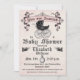 En vintage baby-böm med dekorativ banderoll, finger pekande och fickur är perfekt för en Victorian, Gothic eller Stampunk-inspirerad babydusch. Kör papper bakgrund. Kortets baksida är också dekorerad med ett gammalmodigt umberlla. Anpassa med egen text. Kolla i butiken för mer sånt här.