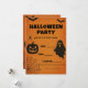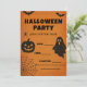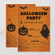 Våga festa! En djärv, vintage Halloween-inbjudan med fladdermöss, spöke, pumpa och spindel – perfekt för kusliga firanden.
