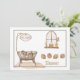 Vintage Baby Shower-inbjudan med baby i bänkar, träblock och "det är en tjej"