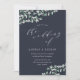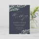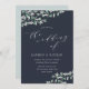 Målade vattenfärgsgreenergiy ramar dina bröllop-uppgifter i vår Winter Sage bröllop-samling. Elegantens utformning har en rik marin blå bakgrund med botaniskt blad av isigens blek och grönt med handskrivna kalligrafaccenter.