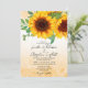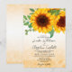 Utformningen har klassiska, anständiga solrosor med vattenfärg. Den här bröllopsinbjudan kombinerar två olika typsnitt för mer dynamiskt utseende.