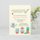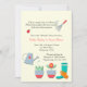 En trevlig inbjudan till en gräsmatta- och trädgårdsdusch. Bakgrunden till krämen har en handräckning, en vattenburk, blomkrukor, trädgårdsbaggar och handskar och en liten stegbugg som kan dras till vilken plats som helst, göras större eller mindre (+-) eller elimineras. Baksidan har en mönster av trädgårdsblommor och verktyg.