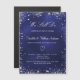 En modern, elegant vow förnyelse bröllopsinbjudningsmagnet. Blåblå bakgrund dekorerad med faux silver glitter-gnistor. Den blå färg är ojämn. Anpassa och lägg till information om namn och party. Vit färgad brev.