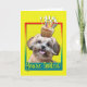 Invitera dina gäster med detta nyckfulla kort för den ShihPoo hundhälsningen. Med en muffin som balanseras på den, är huvudet, är fnissar denna design säker att komma med ett leende och! BTW denna design har flera versioner, med olik bakgrund färgar. Det finns också en grattis på födelsedagenversion.