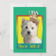 Invitera dina gäster med detta nyckfulla västra höglands- kort för Terrierhundhälsningen. Med en muffin som balanseras på den, är huvudet, är fnissar denna design säker att komma med ett leende och! BTW denna design har flera versioner, med olik bakgrund färgar. Det finns också en grattis på födelsedagenversion.