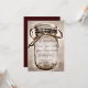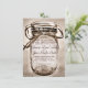 Lantliga inbjudningar för Masonburklandsbyggsbröllop med en sepia tonad mason skorrar på en bekymrad bakgrund. Masonburken har en pilbåge som binds runt om den. Baksidaen av inbjudan är den mörka bruntet med ord "kärlek" är vit skrivar i centrera. Dessa bekymrade bröllopinbjudningar är underbara för någon landstil som gifta sig inklusive lantliga bröllop, ladugårdbröllop, och några bröllop som använder masonen, skorrar i dekoren för bröllopmottagandet.