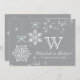 Nätt blek - blått- och grå färgsnowflaken smyckar bröllopinbjudningar med hjärtformade reflexioner av snö och läckerbiten utskrivavna strumpebandsorden. Dessa inbjudan gör nätt jul eller övervintrar themed bröllopinbjudan. Den kan personifieras med parets att gifta sig kända monogram, namn, och bröllop daterar på baksidaen av kortet. Konstverk© Chrissy H. Studio, LLC. All reserverad rättigheter.