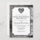 Inbjudningar för bröllop för skäll för träd för utklipphjärtabjörk - särdrag som en vittext boxas över en bakgrund för björkträdskäll. Baksidaen presenterar den samma björkskällbakgrunden. Textsärdrag en blandning eller en elegant skrivar och standart typsnitt i svart och grånar färger.