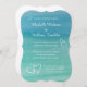 Inbjudningar för bröllop för strand för Aquablåttvattenfärg. Den eleganta vattenfärgdesignen med interlocking hjärtor för vintage och havet färgar bakgrund. Pappert kvalitets- för för anpassadetext och lyx. Sätta inom parantes utklipp formar. Gulligt för giftermål för tema för sommardestinationsstrand. Stilfull typografi.