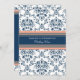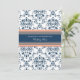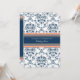 Inbjudningar för förnyande för elegant bröllopvow i mörka marinblåa, persikarosor, kolgrå färg och blom- damastast mönster för vitklassiker med fullständigt anpassadetext att inkludera din vowförnyandeceremoni specificerar.