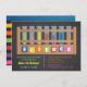 En vetenskapsfödelsedagsfest för någon, som älskar vetenskap, specifikt kemi. Denna färgglada och ljusa inbjudan har en träbunt med provrör i ett sortiment av färger. Texten på behållaren läser "vetenskap" som inte är redigerbar. På det omvänt är linjer med den samma färgpaletten. Neutral design för gender som är underbar för både födelsedagpojkar och flickor.