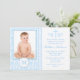 För svart tavlafoto för pojke damast för blått för inbjudningar för dop