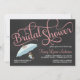Svart tavlainbjudningskort för möhippan -- Swooshcalligraphyen för elegant swirly kritiserar den gråa blackboarden med det gulliga kvinnliga paraplyet och görar sammandrag på blommor. Precis tillfoga namn av blivande brud, datera, tid och specificerar och personifierar den brud- informationen om registreringen. Klicka skräddarsy den för att ändra formatet, stilen, typsnitt, färgen och orienteringen för att skapa dina egna som man har råd med möhippainbjudningar.