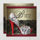 Elegant röd och svart högklackskon födelsedagsfest inbjudan. Den här vackra inbjudan till en högnivågrupp med röda zebra är lätt att anpassa för evenemanget genom att helt enkelt välja knappen "Anpassa den!" för att börja lägga till din händelseinformation, typsnitt stil, typsnitt storlek & färg och text. Observera att alla kort- och inbjudningssymboler som du hittar på Zazzle är tryckta bilder utan egentliga juveler, bows, upphöjda, präglade eller tillagda delar eller delara.