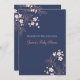 Personlig barnduschinbjudningar i elegant och modern persikodyna rosa, mörk marin blå och vit vintage japansk blommigt blommar mönster. Anpassade med din text, kontakta oss för att begära en ändring av färg.