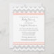 Personlig barnduschinbjudningar i elegant och modern persikofärgad orange rosa, lätt grått och vit roligt chevron zigzags mönster. Anpassade med din text, kontakta oss för att begära en ändring av färg.