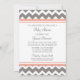 Personlig barnduschinbjudningar i elegant och modern persikofärgad orange rosa, grått av mörk och vit roligt chevron zigzags mönster. Anpassade med din text, kontakta oss för att begära en ändring av färg.