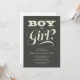 Inbjudningar till bebisens könsrevepartaj med en skifferfärgad design och krämfärgad boktryck.