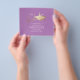Modern i budgeterade enkla inbjudningar till minimalistisk Studentfest som innehåller Student Cap och kalligrafi av snyggt i metallfolie i guld. Odyr men snyggt och chic, Lavender Lila Background, anpassade i alla färg.