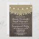 Starfish Rustic Ljus + Burlap Beach Förlovningsfest Inbjudningar - har en bakgrund av brännvall och rustiskt trä med strängen ljus och stjärnfisk. Se matchningssamlingen för fullt i den här designen på den här sidan.