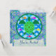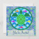 Anpassningsbarnas tvåsidiga inbjudningskort. Front har anpassadet "Du är inbjuden". Tillbaka har inbjudningsinformation - ange händelsens titel, datum, tid, plats och ett personligt meddelande. En havssköldpadda med mönstrad snäcka, mot en blå vatten/vågformad mönster med flera färgade fiskar. Cirkelformgivning med grönt gräns.