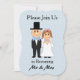 Väl enkla men söta blåa och vita "polka prickade" bröllopsinbjudningar med en tecknad brud och stam på framsidan. På baksidan kan du redigera all bröllop-information i anpassningsområdet.