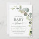 Eucalyptus Greenery Succulent Botanical Watercolor Vår Kön Neutral Pojke eller Flicka Baby Shower Inbjudningar på vit bakgrund - innehåller vacker och elegant manustypografi med moderna botaniska löv och grön för att speciella Mor ska vara firande.
