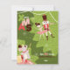 En inbjudan till en jul party med en musknacka, en ballerina och en mus kung i ett barns planta stil. Inbjudningskortsmall i rosa- och grönt-skuggor.
