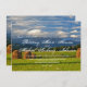 Landsbyggsbröllopet Rustic Mountain Fält bjuder in ett vackert hö fält före grönt träd, berg och blå himmel med moln. Dessa tillkännagivanden från bröllop är perfekt för land eller bröllop på landsbygden.