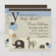 En stoppad elefant, giraffe och sköldpadda fram till och med för att meddela att babyduschen har cirklar runt inbjudan. Ändra bara informationen genom att använda den enkla mallen.