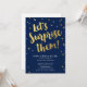 Inbjudningar till överraskningsfest för par med förgylld text och rubriken ”Låt oss överraska dem”. Designen har förgyllda och rosa konfettipunkter och en mörkblå bakgrund. Anpassa texten längst ned för användning vid baby shower, årsdag, förlovningsfest eller bröllopsfest.