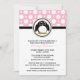 Snyggt och söta Baby Shower-inbjudningar designad i en rosa och vit blandad polka dots-mönster, med en tunn rundad svart penguin och anpassningsbar tryckt med dina firande-uppgifter.