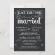 Ät, dryck och vara gifta - inbjudningar till det rustiska landsbyggsbröllopet Vintage - Swirly, ruttna scrollsar och typografi från gamla mode på den unika midnattsbakgrunden av svart brännskador. Lägg till namn och bröllop i den här mallen för enkel använda. Elegant, men roligt och vismisk skrivning av stil-skript i krita kan ändras för ditt formella eller halvformella bröllop-tema. Avslappnad av modern stil är perfekt för bröllop av trendig contemporary med en roligt med sofistikerad charm för den traditionella bruden och brudgummen. Kontakta oss om du behöver mer utrymme för dina uppgifter om bröllop. Andra storlekar och stilar för kartong finns tillgängliga.