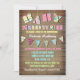 Så söt! Rustic flicka, inbjudningar till babyduschen med ord "babyduschen" och banderoller som är gjorda av olika tyg inspirerade till design mot en blek, brun, strimlad bakgrund. Kontakta mig om du har några problem eller ändringar.