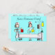 Sjuksköterska pensionsfest inbjudningar, roliga stickfigurer sjuksköterskor runt ett sjukhussäng, skapade av konstnär speciellt för avgående sjuksköterskor. Helt anpassningsbar på baksidan.