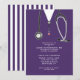 Kreativ sjuksköterska grad party inbjudan med lila sjukhusbuskar och stetoskop. Redigera text om du vill skapa unika inbjudningar till sjuksköterskepartiet eller gradmeddelanden.