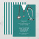 Kreativ sjuksköterska grad party inbjudan med sjukhusbuskar och stetoskop. Redigera text om du vill skapa en inbjudan eller ett meddelande om studentfest av sjuksköterskeskola.