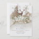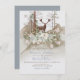 Vacker skog med skog med gräs träd, hjort, pastel och neutralt mjuk grönt, blues och rosa foliage på en faux, mycket lätt grått bakgrund. Baksidan är en dammig blå grått-bakgrund. Perfekt för ett bröllop med ett naturområde i bergsområden. Många matchande artiklar på den ena sidan!