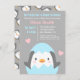 Hennes lilla är på väg att kläckas! Inbjudan gäster att fira med mamma att vara före kläckningsdagen! Den här babyduschinbjudan har en söt liten pingvin från baby. På andra sidan är en pingvin mönster. En enkel men vältalig inbjudan med färger av pastellblått, rosa, grått. Bakgrunden färg kan ändras i anpassningsläge. Underbar för babyduschar som hålls under vintern december. Anpassa med dina duschdetaljer.