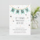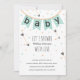 Mint, guld och rosa hjärtan, regndroppar och pilar paras med en "baby" buntar flagga i dessa söta, mynta barnduschinbjudningar. Perfekt bjuder in könsneutrala eller pojkduschar. Arbetar också underbart för en skogslandskirurgi.