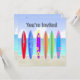 Har en strandbakgrund med sand, hav och himlar, 6 färgdekorerade ytor. Frontstiliserad text är du inbjuden. Text ställs in på baksidan för att lägga till din händelseinformation. Snyggt- och trendig Sommarpartiets inbjudan finns i två storlekar. 5x7 och 5.25x5.25. Lägg till dina detaljer framtill och bakåt genom att välja "Anpassa den!" om du vill börja lägga till händelseinformation, teckensnitt stil, storlekare teckensnitt & färg och text.