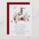 Vackert hjort för träets vattenfärg: Vinterbröllopsinbjudan till helgdag. Har ett lager med vintertorkade blommor och grenar med burgundi, persika och grönt på en faux, mycket lätt grått bakgrund. Perfekt för fall, vinter eller jul bröllop med ett naturområde på bergssidan. Många matchande artiklar på den ena sidan!