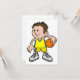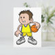 Denna design är en ung basketspelare. Killen har gul klänning och håller en basketboll och är redo att spela. Denna unga basketspelardesign ser bra ut på dessa inbjudningar