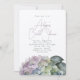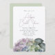 Söt blommigt inbjudningskort för möhippa med modern text. En lavender, grönt och blå vattenfri blomma gör ett stort gräns vid grund på 5 x 7-tums skrivbord med pappra uppgraderingar som tillval. Färg överensstämmer med blommigten med titeln party och bridens namn i extra stora, tunna skript.